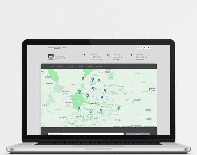 The target for the Madrid WordPress theme was to create a flexible yet powerful solution for real estate agents to be able to tailor it to their special needs without any programming skills or the use of page builders. Through widgets and page templates in combination with custom meta boxes the layout options are sheer endless. In addition users have unlimited color options through the theme customizer to match the design with their branding.